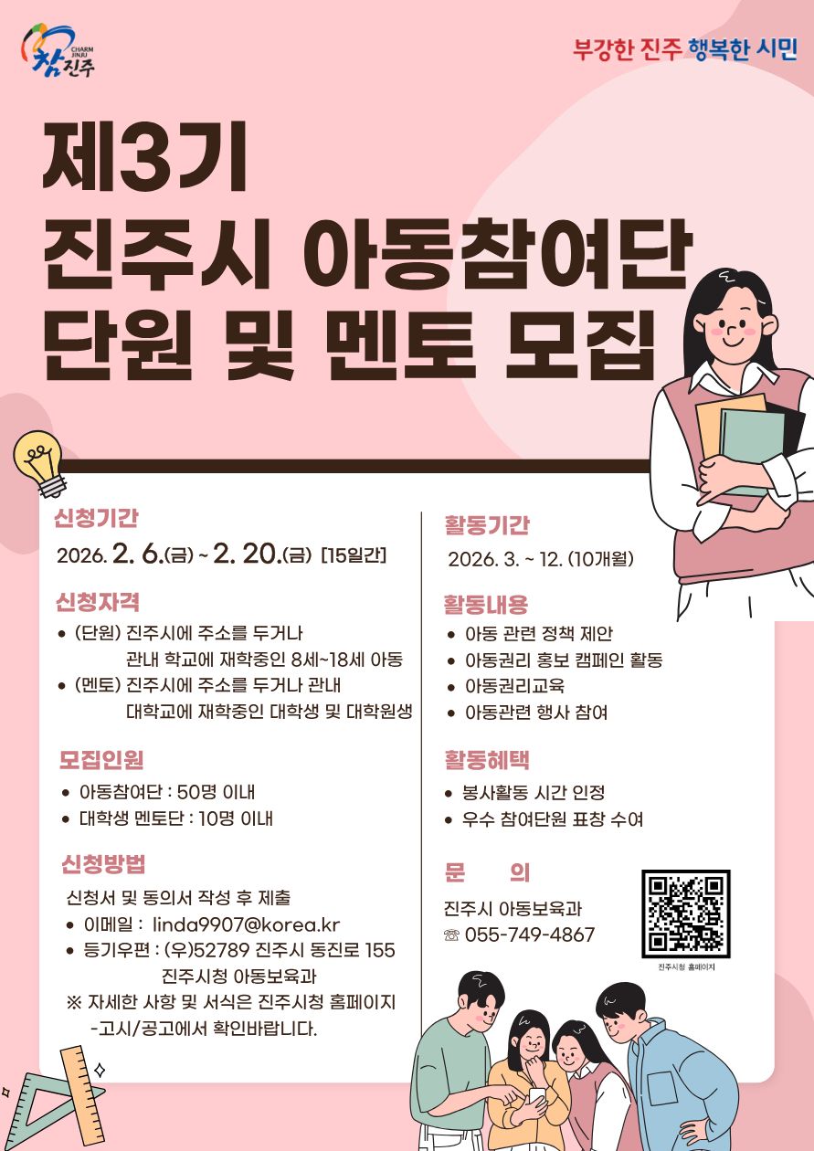 「제3기 진주시 아동참여단」 모집 안내
