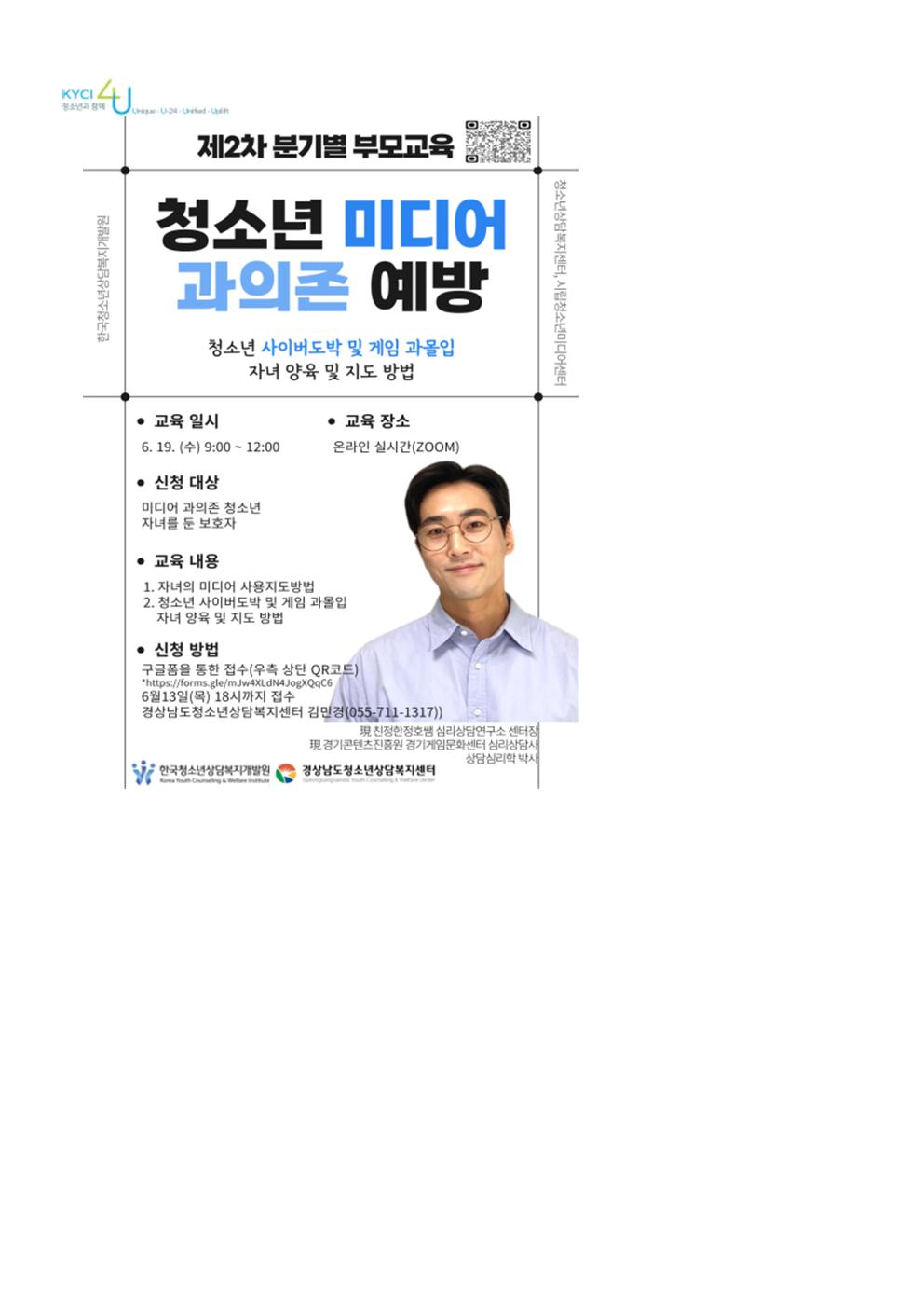 2024년 디지털미디어 피해 청소년 회복지원 사업 부모교육 운영 안내