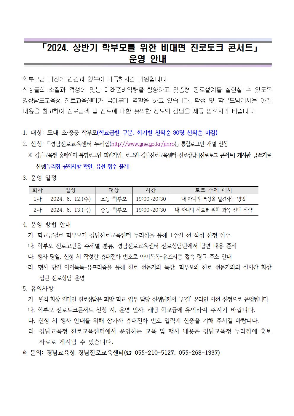 '2024. 상반기 학부모를 위한 비대면 진로 토크 콘서트' 안내.hwp