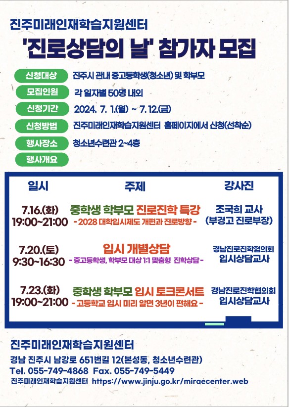 미래인재센터 "진로상담의 날(1차)" 참가자 모집 안내