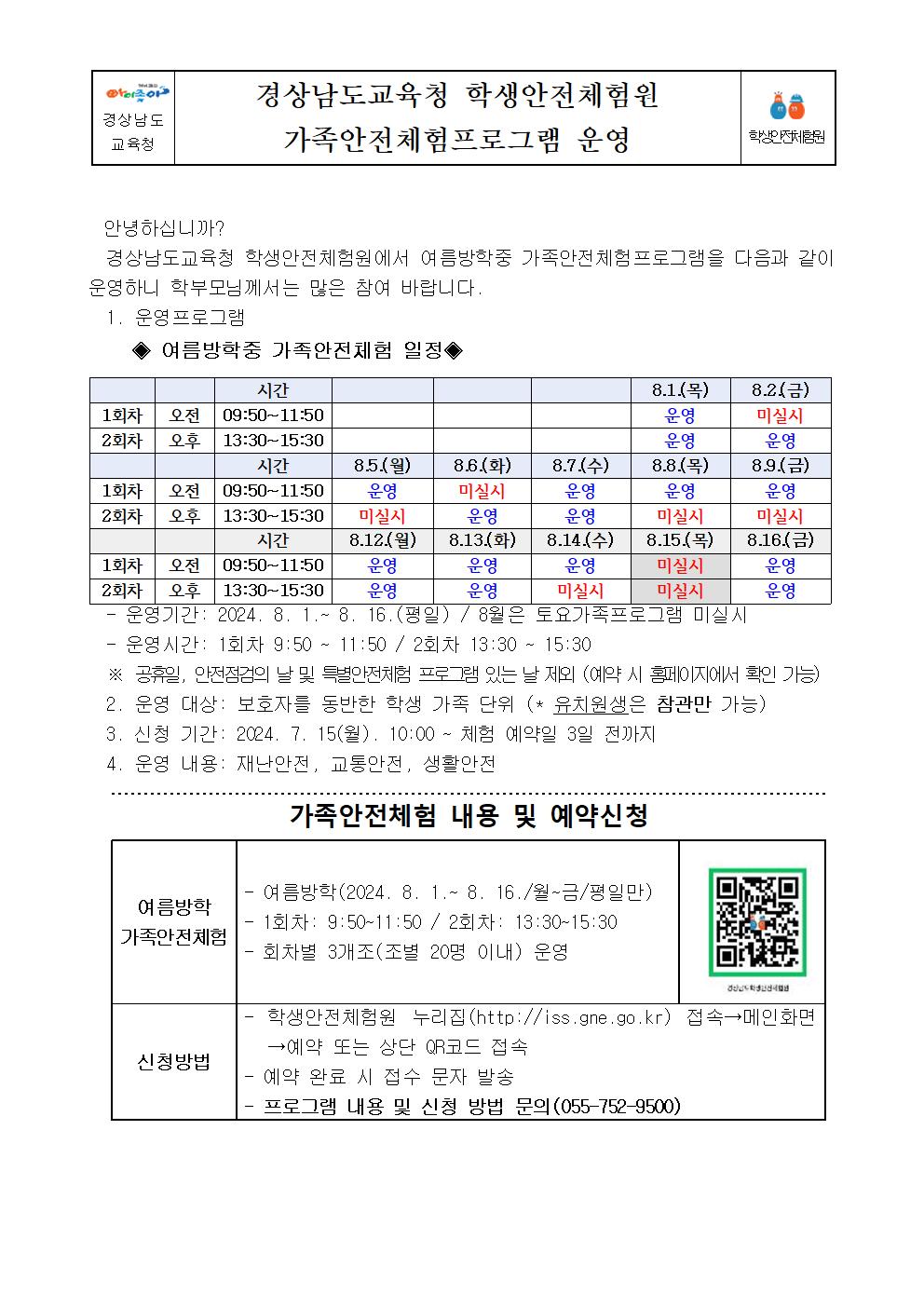 경상남도교육청 학생안전체험원 가족안전체험프로그램 운영 안내