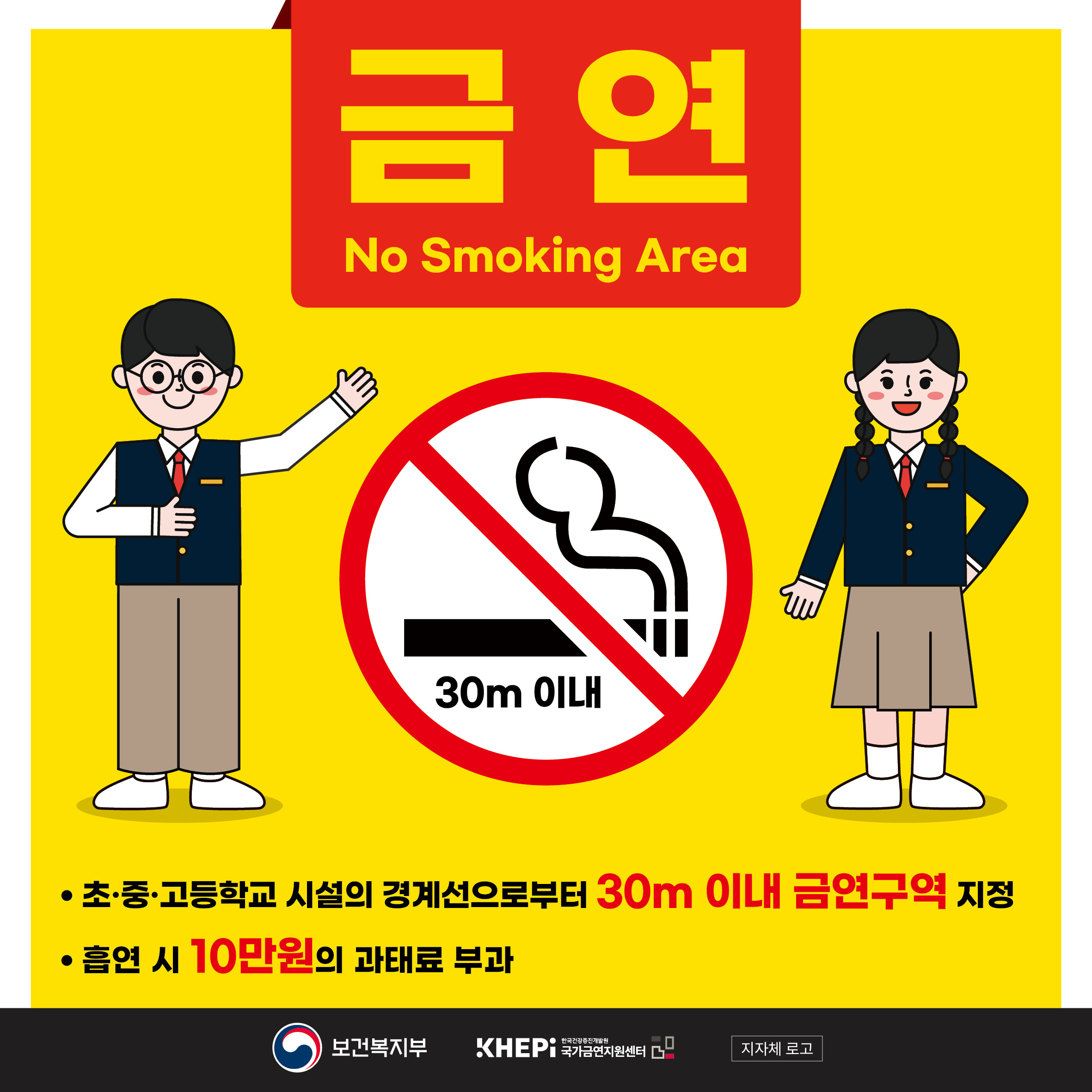 -초,중,고등학교 시설의 경계선으로부터 30미터 이내의 구역으로 금연구역 신규지정