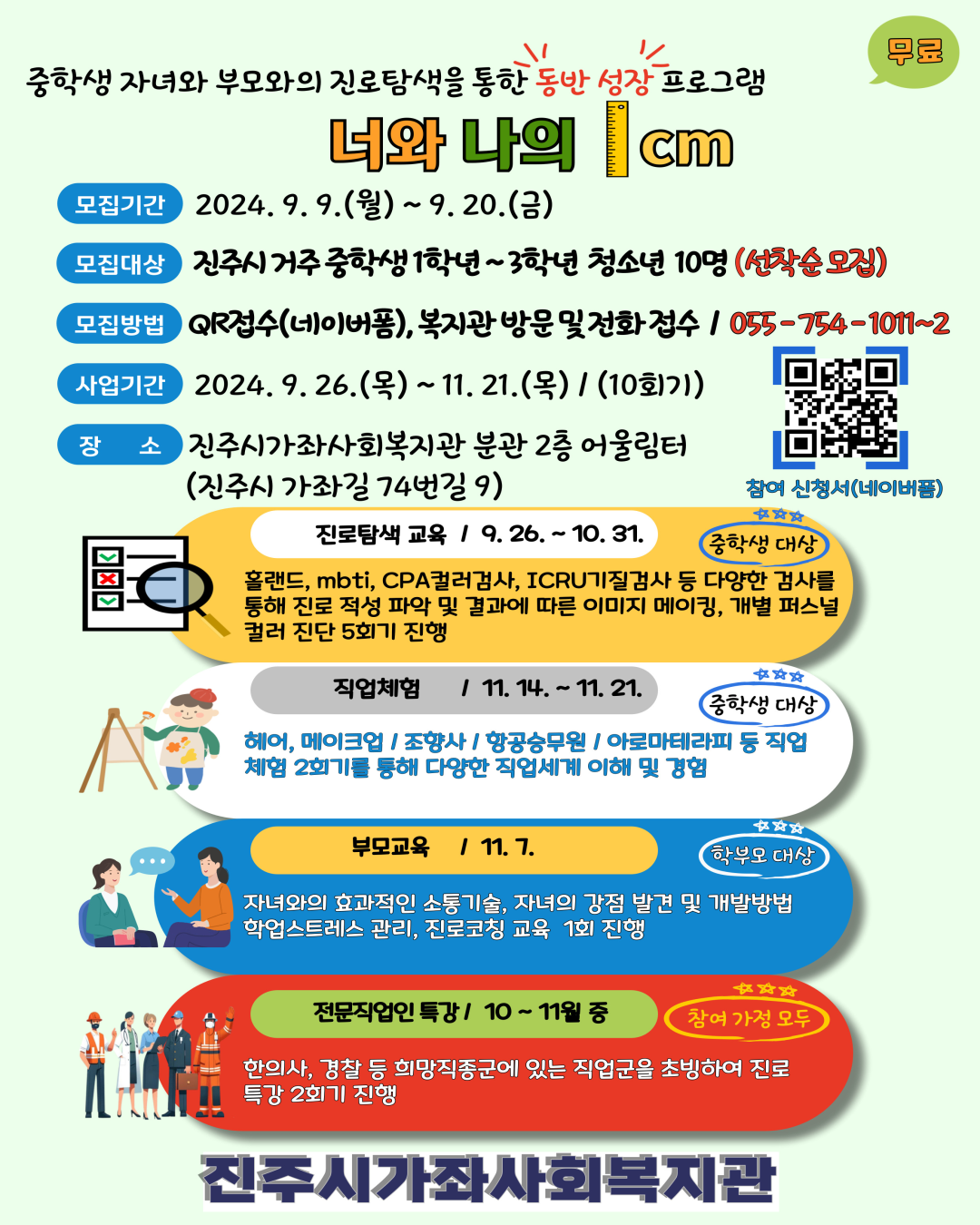 2024년 중학생 자녀와 학부모의 진로탐색을 통한 동반성장 프로그램 "너와 나의 1cm" 사업 참여자 모집 안내