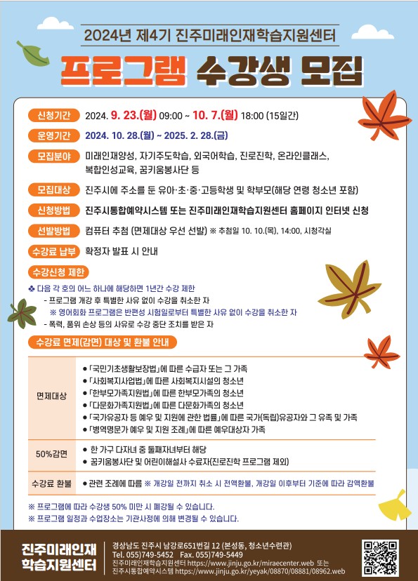 진주미래인재센터 2024년 제4기 프로그램 수강생 모집 안내
