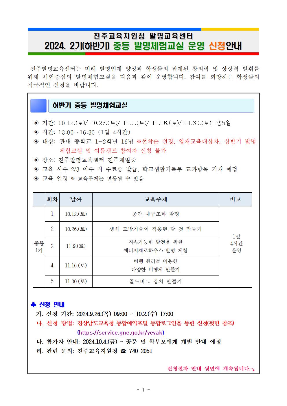 2024. 진주발명교육센터 2기(하반기) 발명체험교실 운영 계획 및 신청 안내