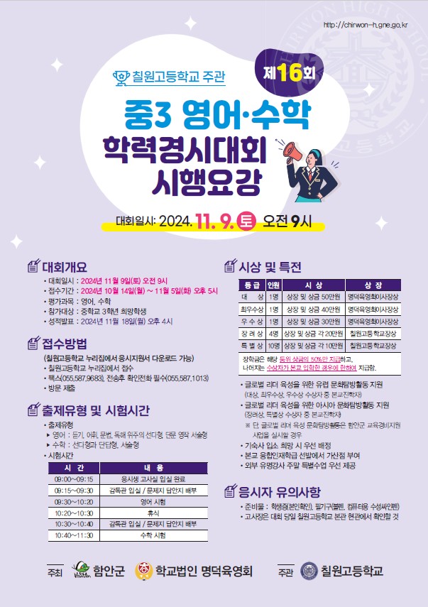칠원고등학교_제16회 중3 영어수학학력경시대회 시행요강 홍보 안내장.pdf