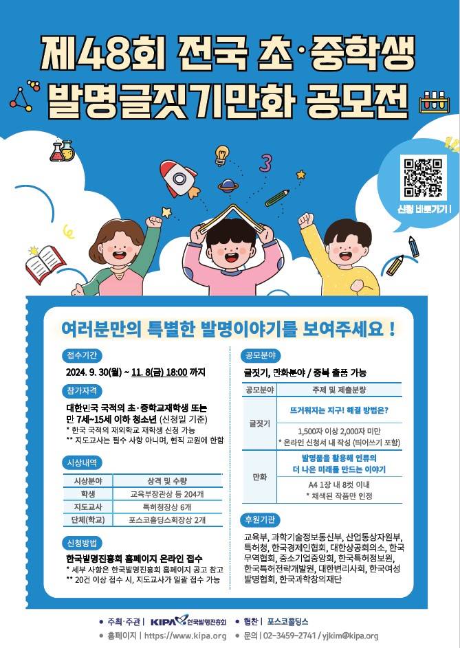 제48회 전국 초,중학생 발명글짓기, 만화 공모전 안내