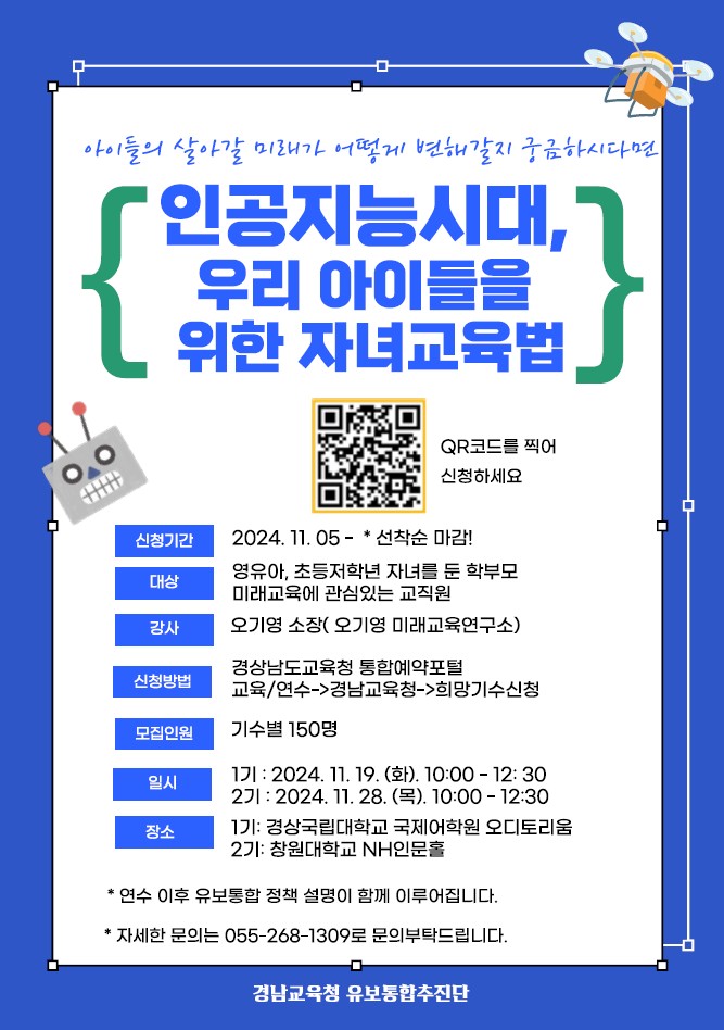 "인공지능시대, 우리 아이들을 위한 자녀교육법" 학부모 역량강화연수 안내