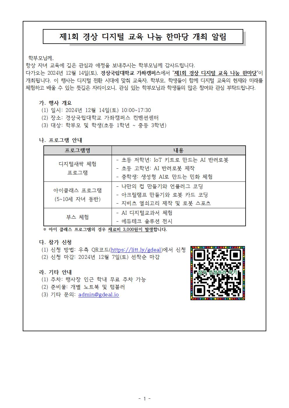 제1회 경상 디지털 교육 나눔 한마당 개최 알림
