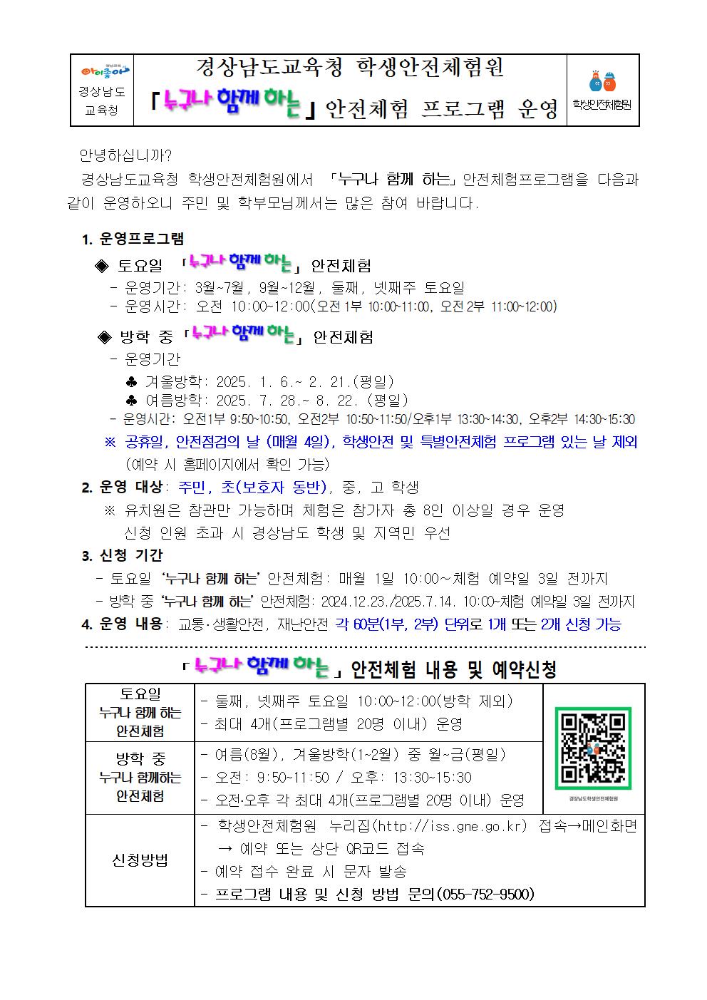 2025. 누구나 함께하는 안전체험 프로그램 안내